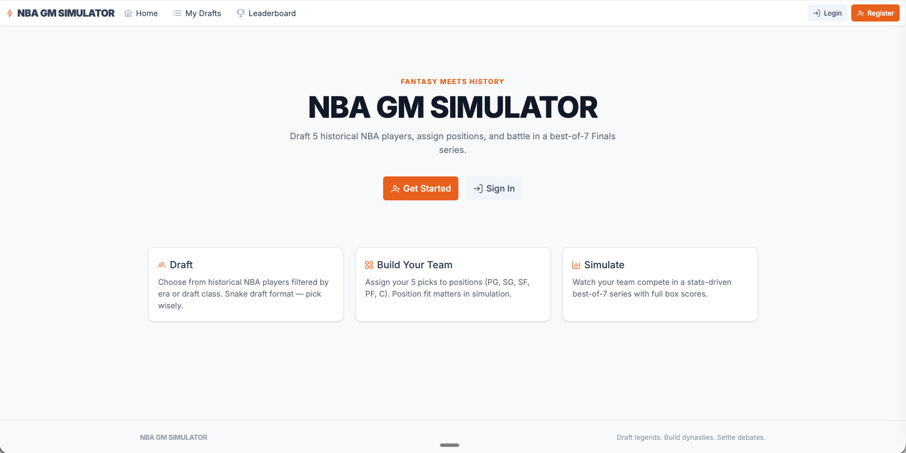 Think you know ball? Let's find out. Snake-draft five players from across NBA history, assign them to positions, and let the sim do the talking. Every series is a full best-of-7 with box scores — so when your squad wins, you've got the receipts.
